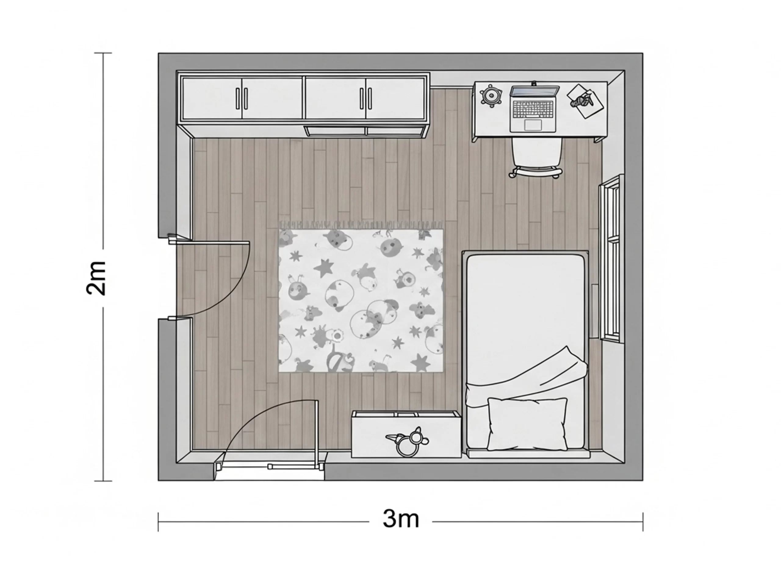 Layout esempio per arredare una cameretta 6 mq