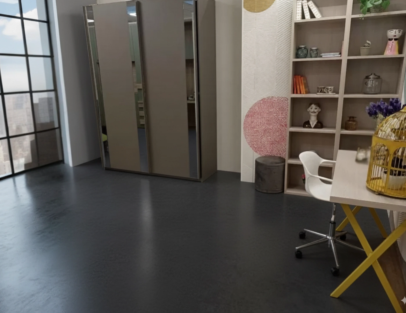 Angolo studio completo:ย La scrivania con robuste gambe in metallo garantisce stabilitร per studio e creativitร . La libreria integrata trasforma l’angolo in un vero centro culturale, perfetto per libri, quaderni e materiale scolastico. La sedia ergonomica inclusa supporta una corretta postura durante le ore di studio.