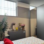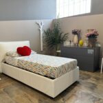 La cameretta รจ caratterizzata da un comodo letto in ecopelle bianco, un armadio a 2 ante scorrevoli di cui una con specchiera, un comodino e un comรฒ.