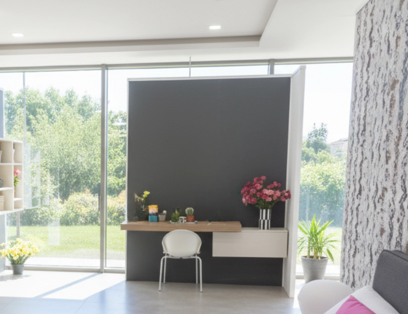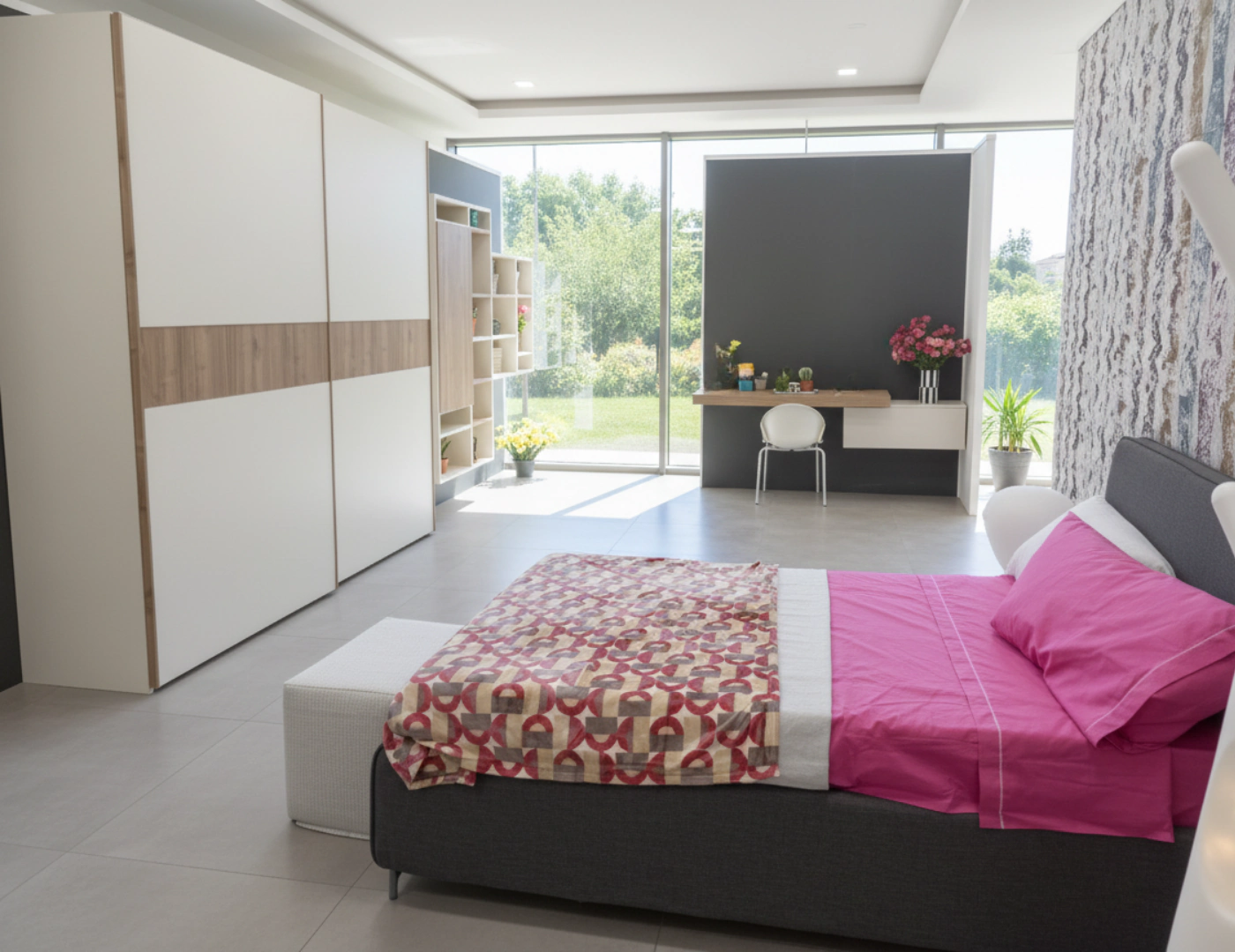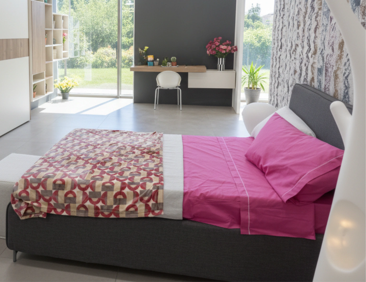 L’angolo studio completo include una spaziosa scrivania con gambe in metallo dal design industriale-chic e libreria integrata, perfetta per organizzare libri e materiale scolastico. Ogni elemento รจ progettato ergonomicamente per garantire comfort durante le ore di studio.