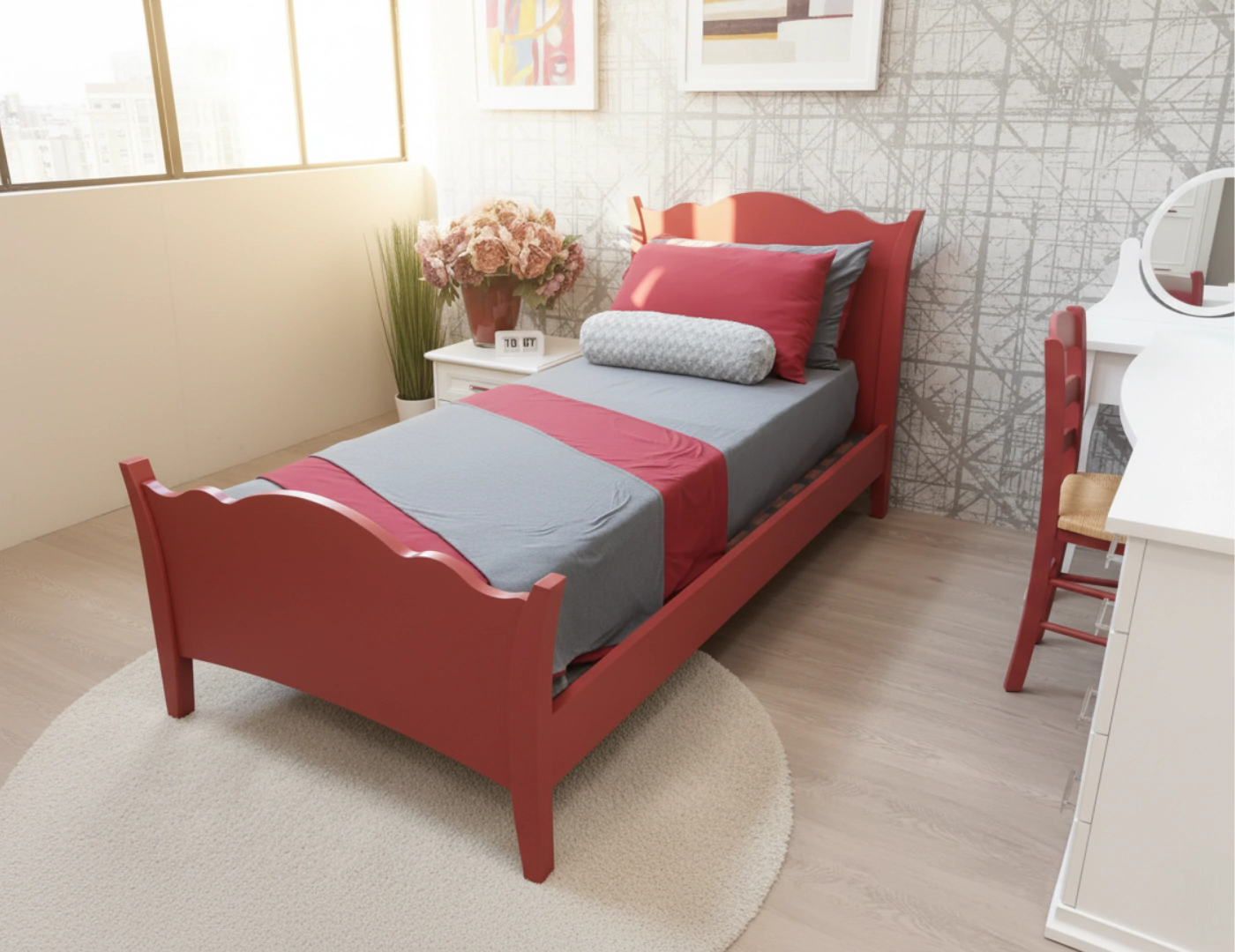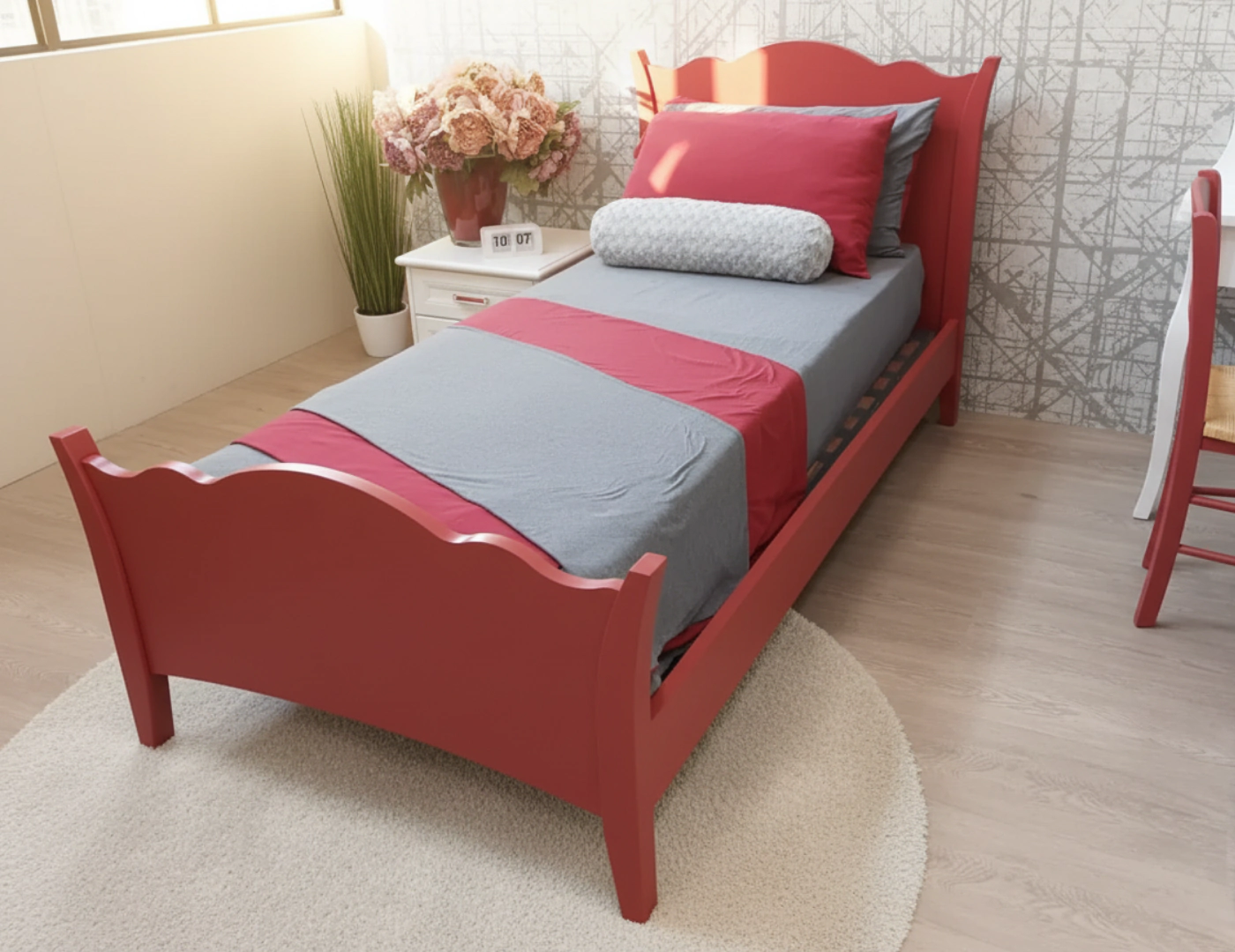 Caratteristiche Distintive: Questo letto si distingue per il suo carattere moderno e le linee pulite che lo rendono perfetto per camerette di ragazzi e adolescenti. La finitura rossa vivace e di tendenza dona personalitร all’ambiente, mentre la struttura solida garantisce durabilitร e stabilitร nel tempo.